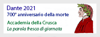 Una parola di Dante al giorno, per tutto il 2021. In occasione della ricorrenza dei settecento anni dalla morte del poeta, l'Accademia della Crusca pubblicherà 365 schede dedicate alla sua opera: affacci essenziali sul lessico e sullo stile del poeta, con brevi note di accompagnamento. La parola di Dante fresca di giornata è un'occasione per ricordare, rileggere, ma anche scoprire e approfondire la grande eredità linguistica lasciata da Dante. Consulta.